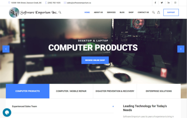 A website for a full service IT Company and store located in Dawson Creek, British Columbia. Work involved engineering the structure, putting together graphics and content.