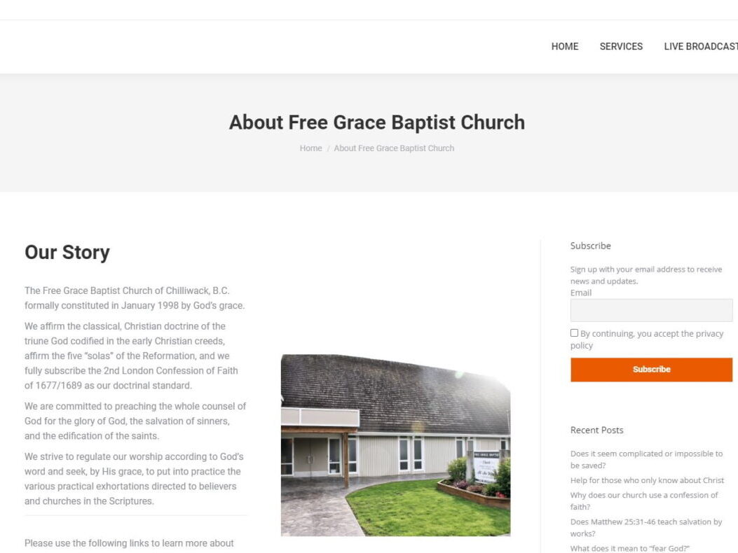 A reformed baptist church in the Fraser Valley of British Columbia, Canada. We had to rebuilt this website to look as close as possible to the old one, but utilizing latest technology and coding.
