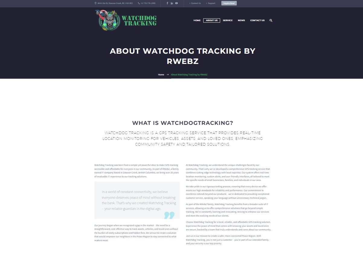At RWebZ, we are proud to introduce Watchdog Tracking, a service specifically designed to provide peace of mind for families with special needs children, elderly loved ones, homeowners, and small businesses. Our journey to create this service has been marked by years of dedicated testing and learning, ensuring that we deliver reliable and effective tracking solutions tailored to meet the unique needs of our clients.